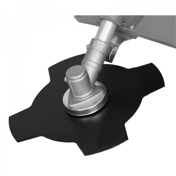 Questo decespugliatore è equipaggiabile anche con disco in acciaio come apparato di taglio (in dotazione).