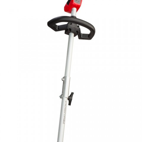 Robusta asta in alluminio da 25.4mm di diametro, scomponibile (giunto a metà dell'asta che permette di togliere l'accessorio decespugliatore standard con testina a filo e applicare eventuali accessori opzionali, non in dotazione, quali potatore a catena, tagliasiepi, fresa per terreno, prolunga da 65cm, accessorio decespugliatore con disco in metallo).