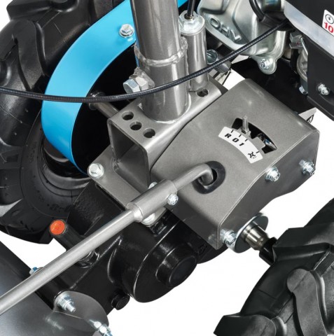 Le ruote di grandi dimensioni e le stegole regolabili, sia in altezza che lateralmente, tramite una comoda leva, garantiscono all’operatore il massimo controllo del motocoltivatore, consentendo di adattarlo ai diversi contesti di utilizzo.