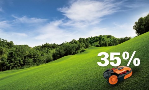 Landroid gestisce pendenze fino a 20° (35%). Il sofisticato sistema elettronico installato permette a Landroid di calcolare la deriva, l'inclinazione e altri parametri allo scopo di assicurare un taglio perfetto anche su terreni difficili.
