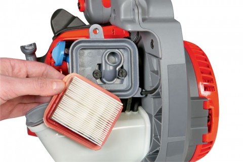 Sistema filtraggio aria: perimetralmente isolato dalla sua cover fissata con due viti, al suo interno ha un ampio filtro in carta di facile pulizia e grande aspirazione. Il supporto filtro invece ha installato il ‘diodo fluido’, brevetto Emak, che aiuta ad allungare i tempi di manutenzione aumentandone le performance.