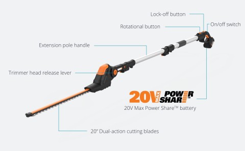 Tagliasiepi a batteria telescopico WORX WG252E - lama da 45cm - diametro di taglio 16 mm - batteria e caricabatteria inclusi - SPEDIZIONE GRATUITA